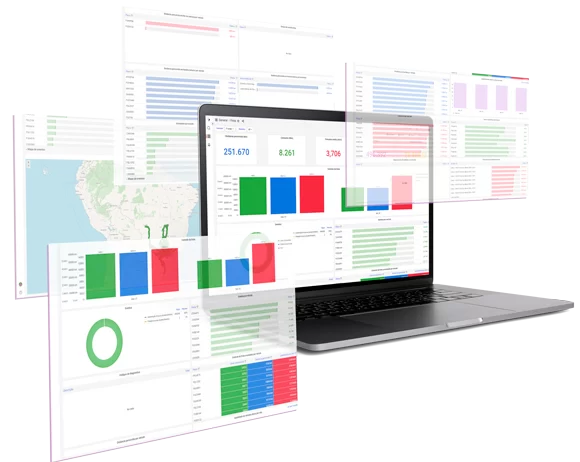 • Plataforma própria com dashboards personalizáveis
